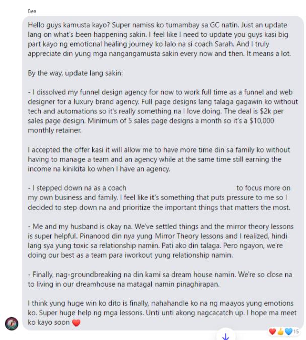 Aside from receiving support from the QCA FB Group, each batch will have its own unique Messenger Group Chat where you can receive updates and share stories outside of our weekly community calls.